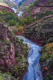 Alpes-Maritimes (06), vallée du Var, les gorges de Daluis ont été creusées par le Var dans des roches de couleur rouge lie de vin appelées pélites datant du Permien. Ces gorges sont appelées aussi le "Colorado Niçois"