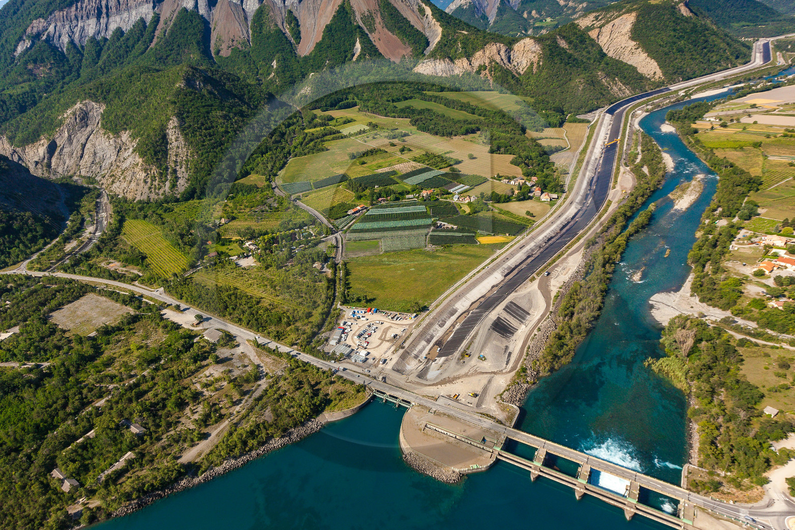| Description | Hautes-Alpes, 05, Barrage de Serre-Ponçon, Espinasse et le canal de la Durance |