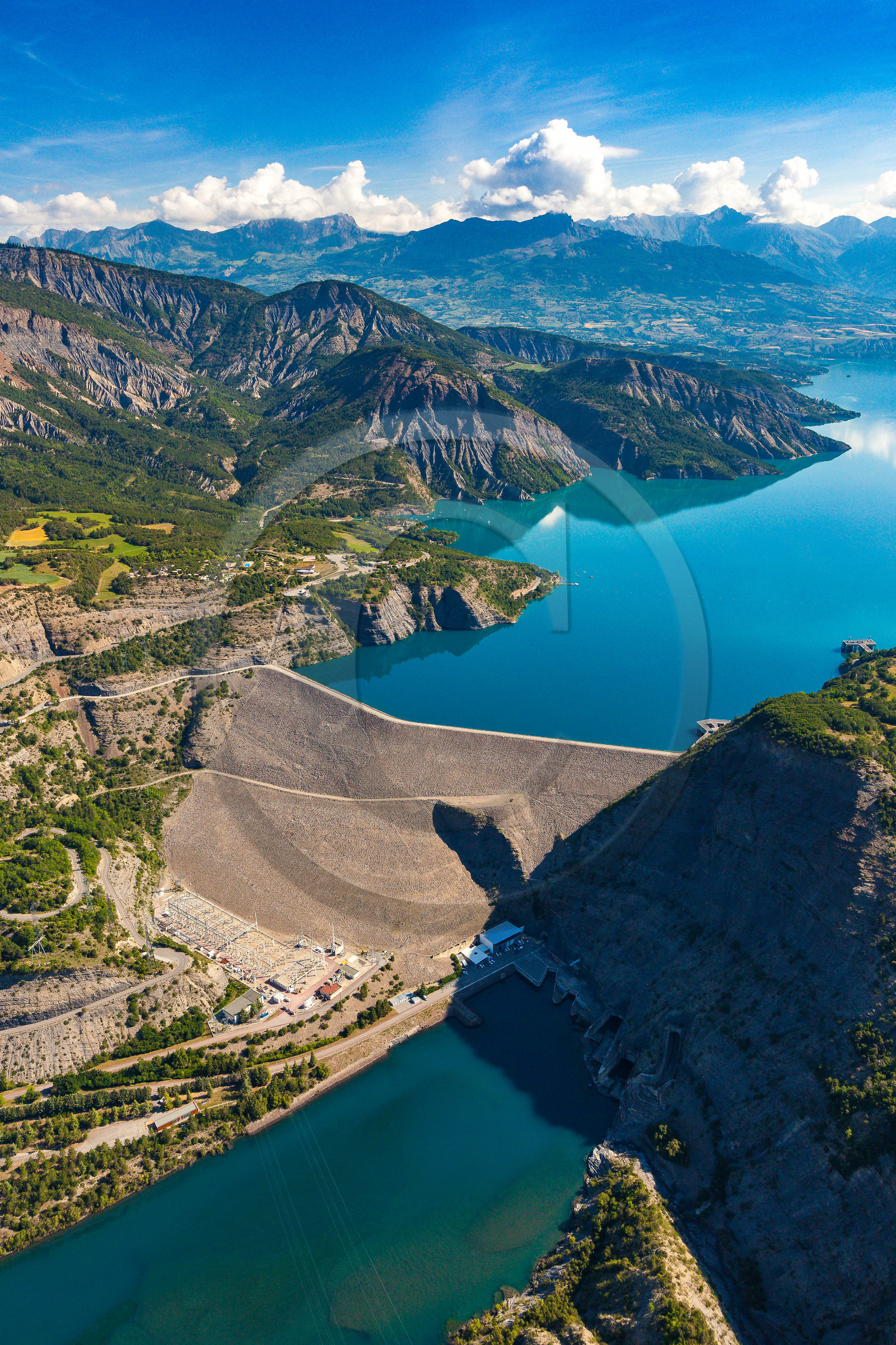 | Description | Hautes-Alpes, 05, Lac de Serre-Ponçon, Espinasses, Le Barrage et le bassin de compensation |