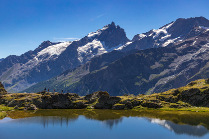 • Hautes-Alpes (05), La Grave, Serre Chevalier, Parc national des Ecrins, plateau d'Emparis, randonnée pédestre avec Alexandre Puech, accompagnateur en moyenne montagne avec Bureau Montagne Horizons La Grave Serre Chevalier, le lac Noir et La Meije // Hautes-Alpes (05), La Grave, Serre Chevalier, Ecrins National Park, Emparis plateau, hiking with Alexandre Puech, mountain guide with Horizons Mountain Bureau La Grave Serre Chevalier