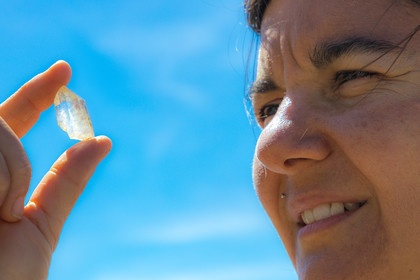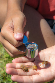 • Hautes-Alpes (05), La Grave, Serre Chevalier, Parc national des Ecrins, plateau d'Emparis, randonnée pédestre avec Alexandre Puech, accompagnateur en moyenne montagne avec Bureau Montagne Horizons La Grave Serre Chevalier, observation de cristaux de quartz à la loupe // Hautes-Alpes (05), La Grave, Serre Chevalier, Ecrins National Park, Emparis plateau, hiking with Alexandre Puech, mountain guide with Horizons Mountain Bureau La Grave Serre Chevalier