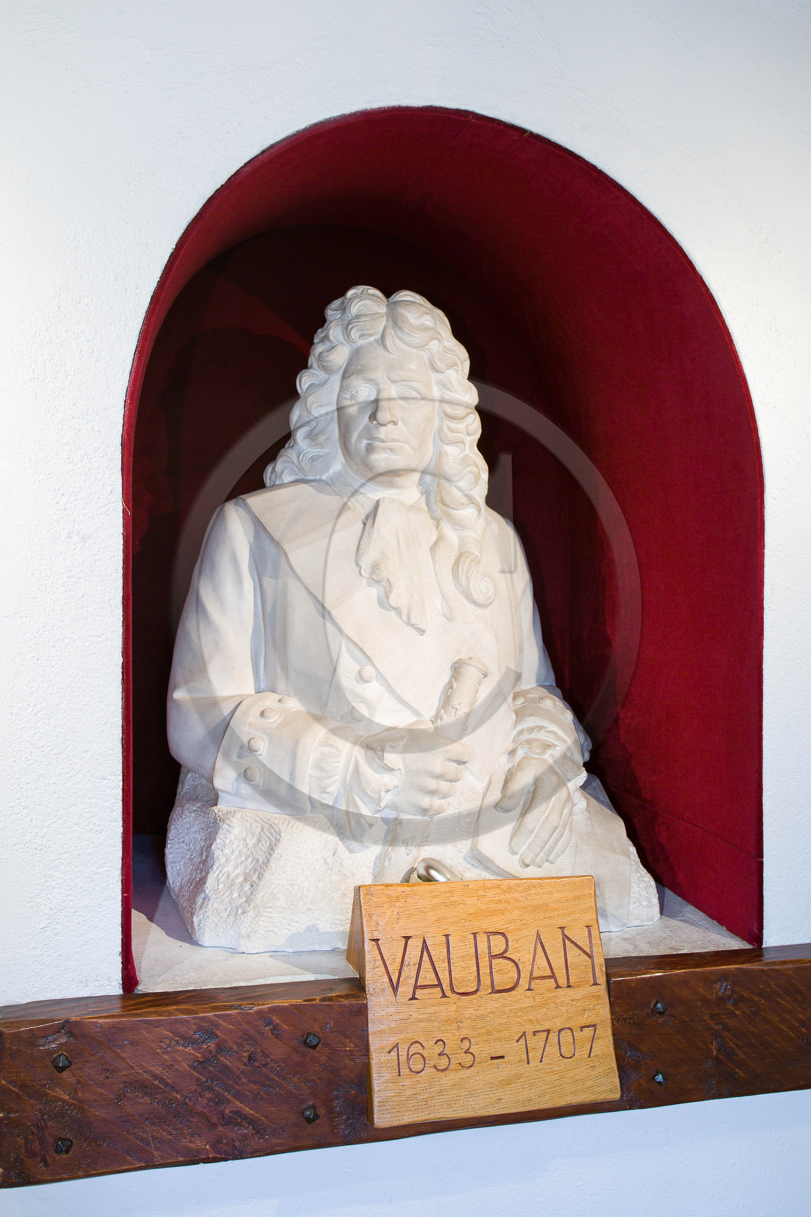 | Description | Hautes-Alpes (05), Serre Chevalier Vallée Briançon, 1350m d'altitude, ville d'Art et d'Histoire fortifiée par Vauban, les fortifications de Vauban sont inscrites sur la liste du patrimoine mondial de l'UNESCO, buste de Vauban, Sébastien Le Prestre de Vauban |