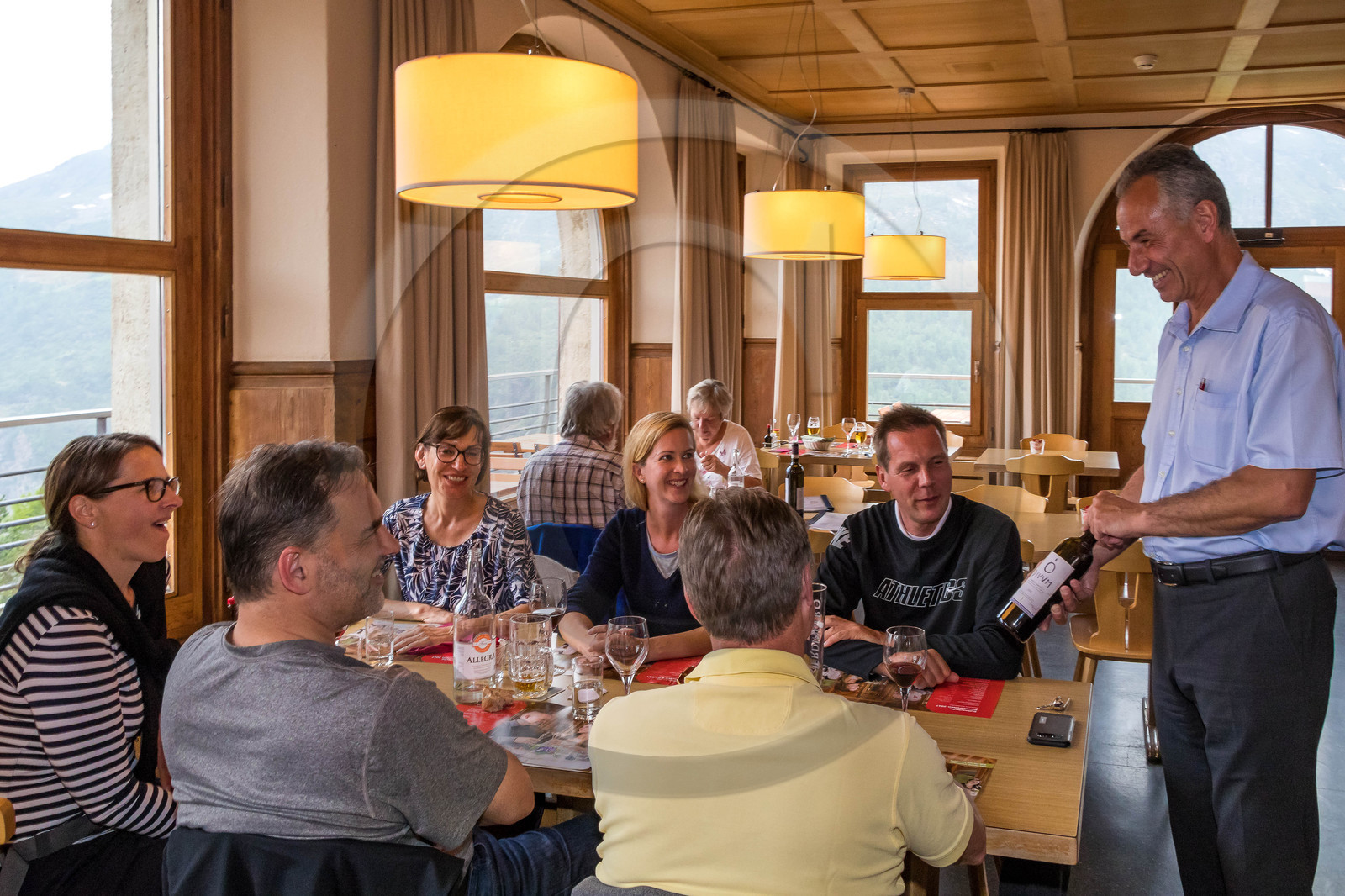 | Description | Suisse, canton des Grisons, Chemins de fer rhétiques, traversée des Alpes à bord du Bernina Express, itinéraire inscrit au patrimoine mondial de l'UNESCO, Alp Grüm Hôtel Restaurant |