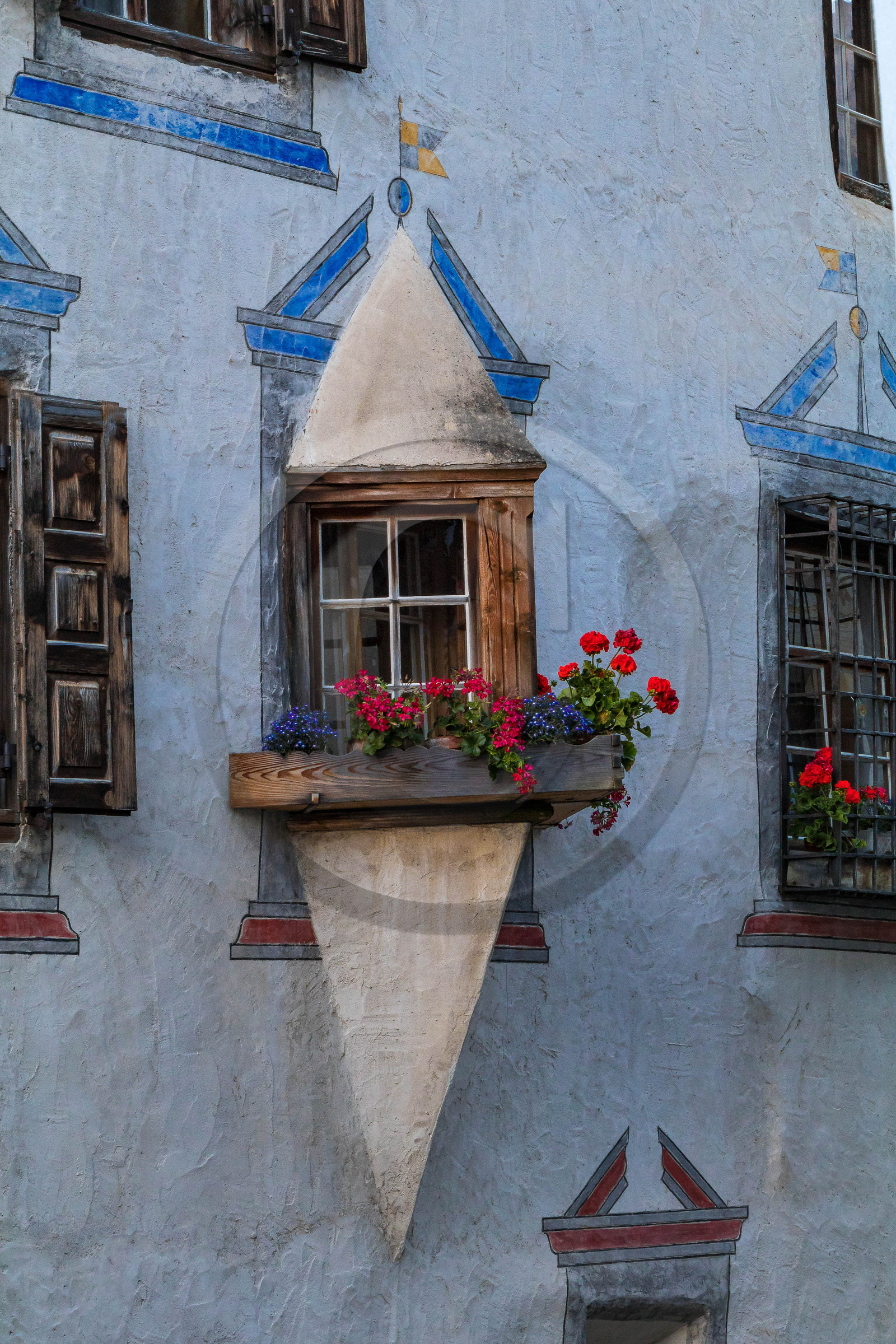 | Description | Suisse, canton des Grisons, Chemins de fer rhétiques, traversée des Alpes à bord du Bernina Express, itinéraire inscrit au patrimoine mondial de l'UNESCO, Bergün, maisons et fenêtres engadinoises caractérisées par des sgraffites (technique de grattage) |