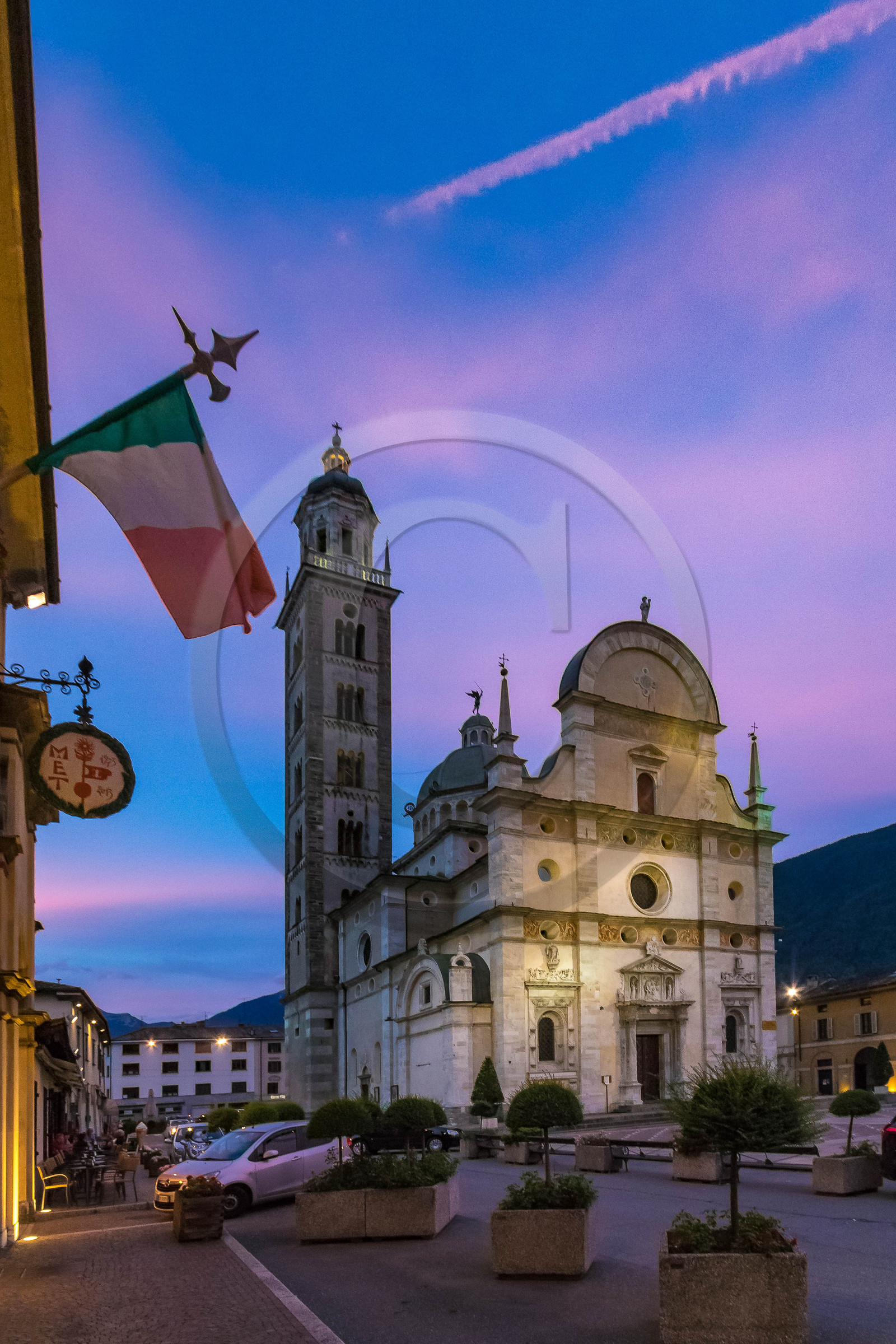 | Description | Italie, Chemins de fer rhétiques, traversée des Alpes à bord du Bernina Express, itinéraire inscrit au patrimoine mondial de l'UNESCO, Tirano, Basilica della Madonna di Tirano |
