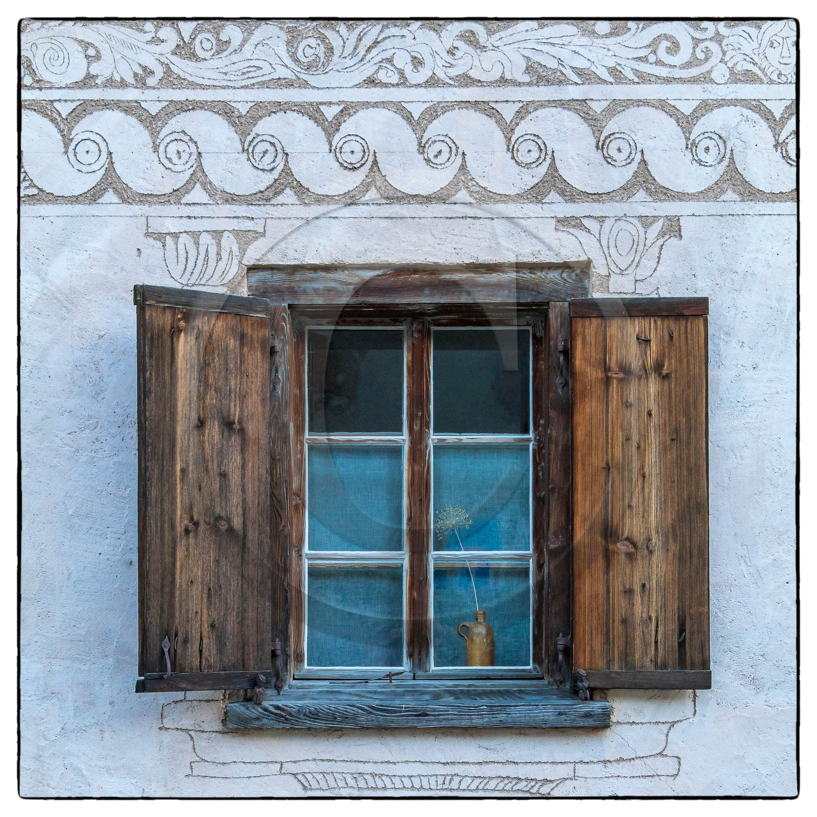 | Description | Suisse, canton des Grisons, Chemins de fer rhétiques, traversée des Alpes à bord du Bernina Express, itinéraire inscrit au patrimoine mondial de l'UNESCO, Bergün, maisons et fenêtres engadinoises caractérisées par des sgraffites (technique de grattage) |