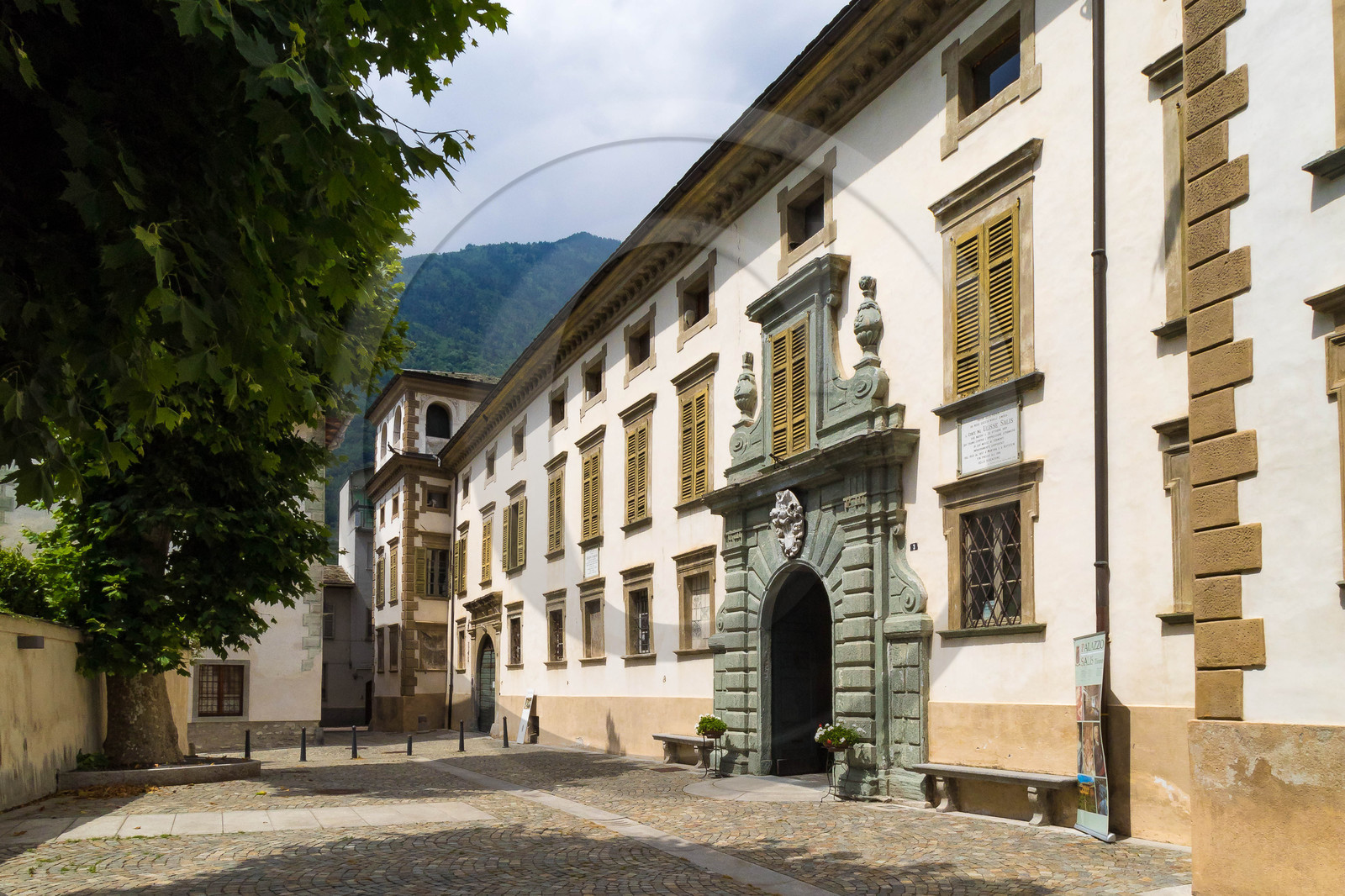 | Description | Italie, Chemins de fer rhétiques, traversée des Alpes à bord du Bernina Express, itinéraire inscrit au patrimoine mondial de l'UNESCO, Tirano, Palazzo Salis |