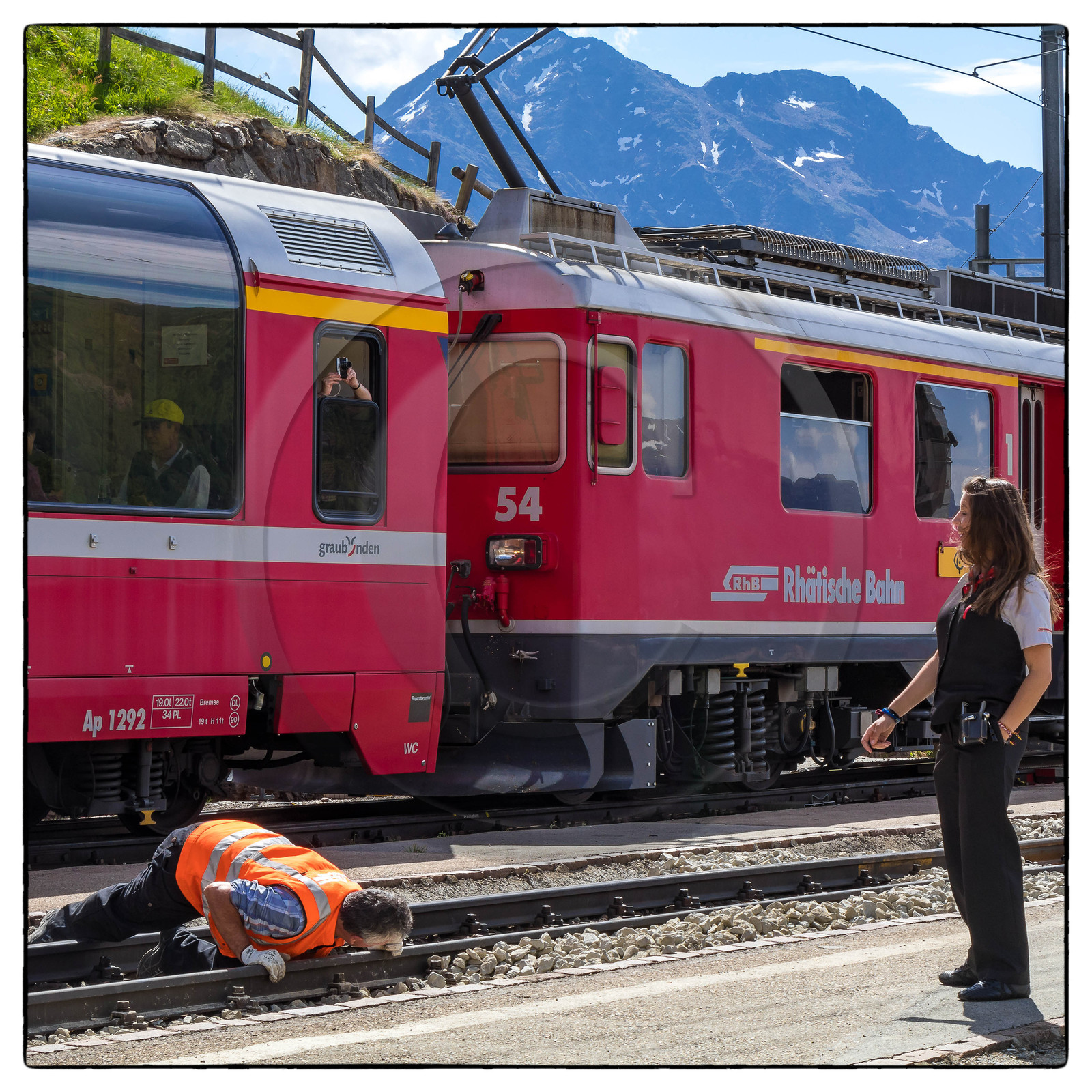 | Description | Suisse, canton des Grisons, Chemins de fer rhétiques, traversée des Alpes à bord du Bernina Express, itinéraire inscrit au patrimoine mondial de l'UNESCO, Alp Grüm |