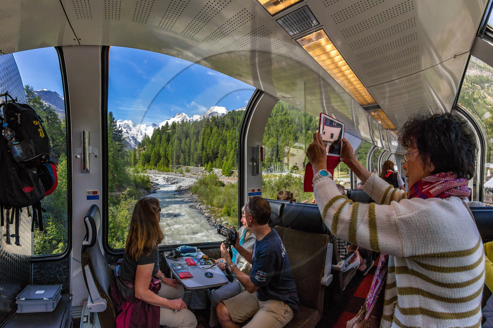 | Description | Suisse, canton des Grisons, Chemins de fer rhétiques, traversée des Alpes à bord du Bernina Express, itinéraire inscrit au patrimoine mondial de l'UNESCO |