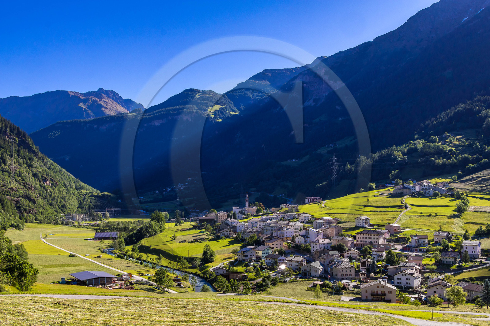 | Description | Suisse, canton des Grisons, Chemins de fer rhétiques, traversée des Alpes à bord du Bernina Express, itinéraire inscrit au patrimoine mondial de l'UNESCO, Val Poschiavo, San Carlo |