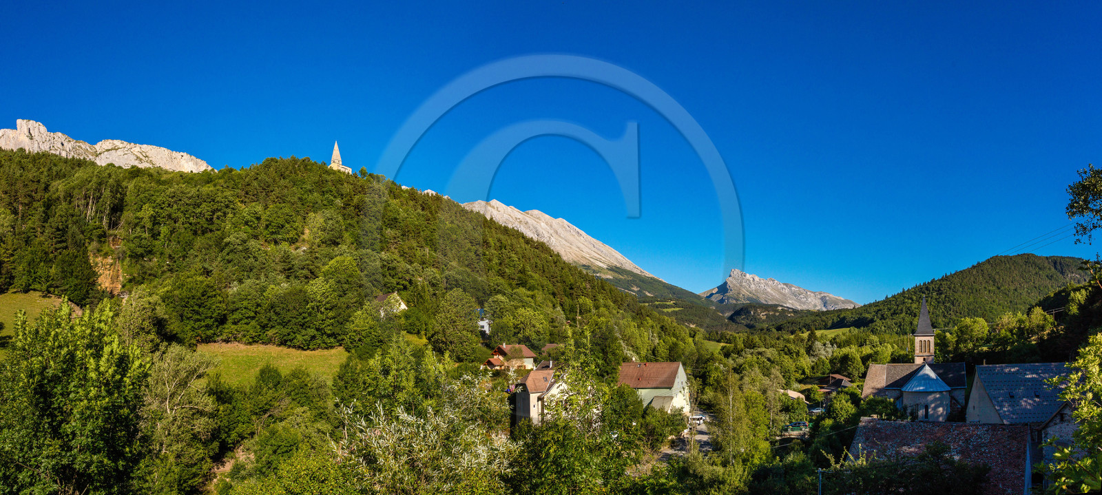 | Description | Hautes-Alpes (05), Buech-Dévoluy, massif du Dévoluy, Dévoluy, Saint-Disdier, le village, l'église et la chapelle des Gicons appelée Mère Église classée monument historique |