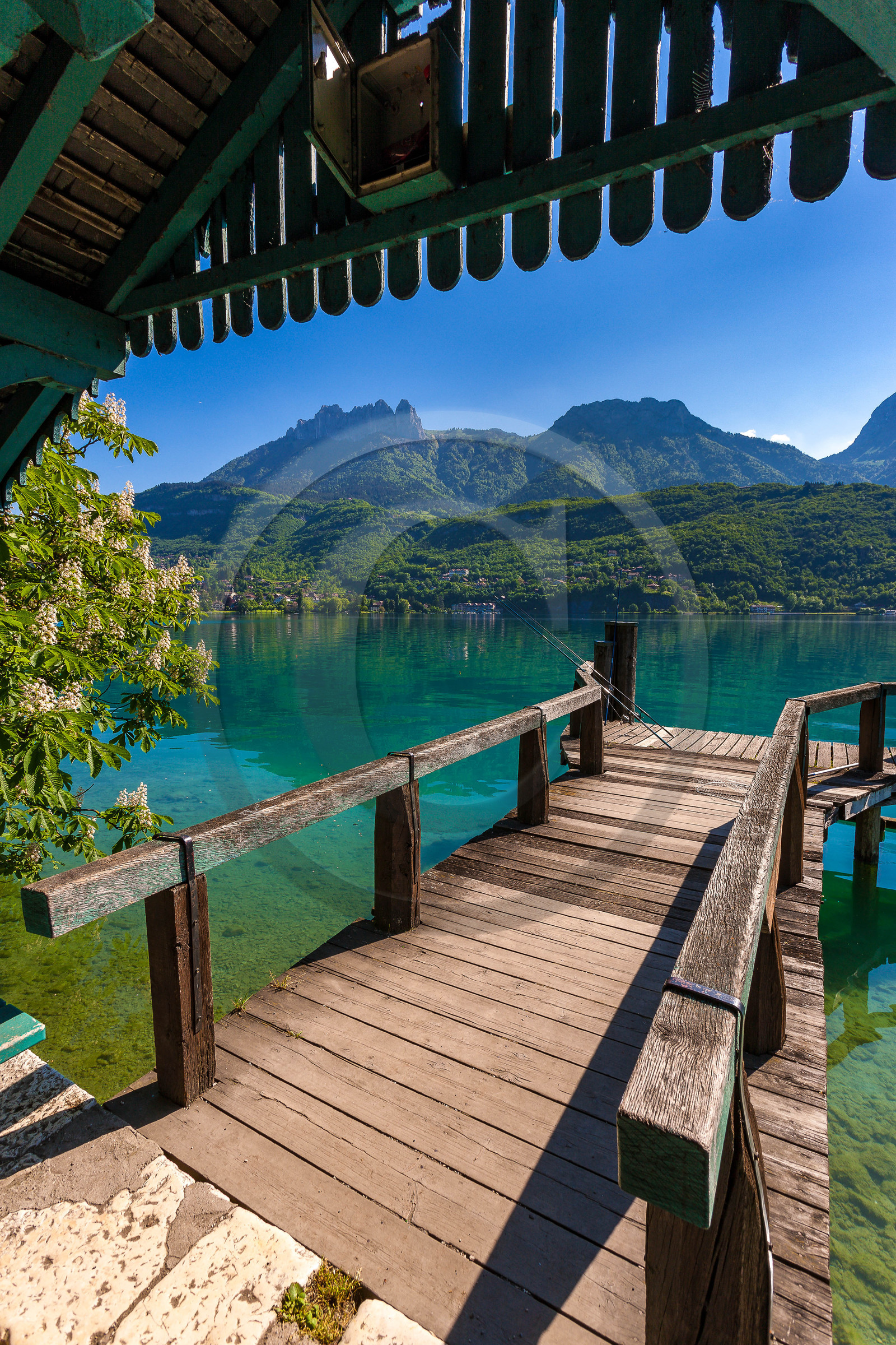 Haute-Savoie (74), Lac d'Annecy, village de Duingt, pêcheur