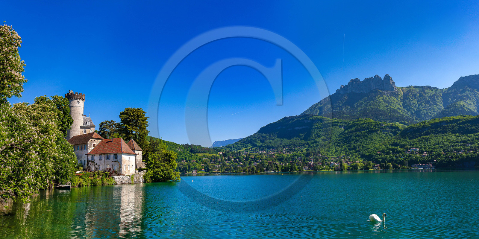 | Description | Haute-Savoie, 74, Lac d'Annecy, village de Duingt, domaine de Châteauvieux, Château de Ruphy et en face, la réserve naturelle du Roc de Chère |