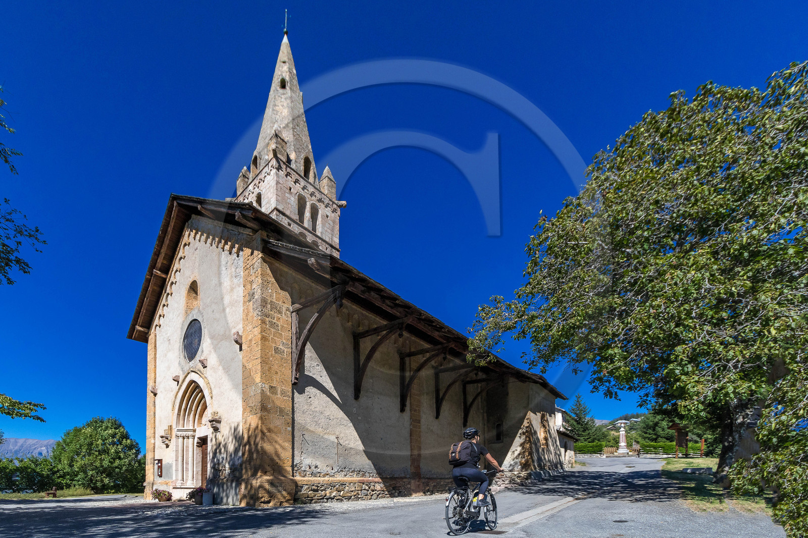 | Description | Hautes-Alpes (05), Pays de Serre-Ponçon, Lac de Serre-Ponçon, Saint-Sauveur, église paroissiale de la Transfiguration du XVème siècle, classée au titre des monuments historiques |