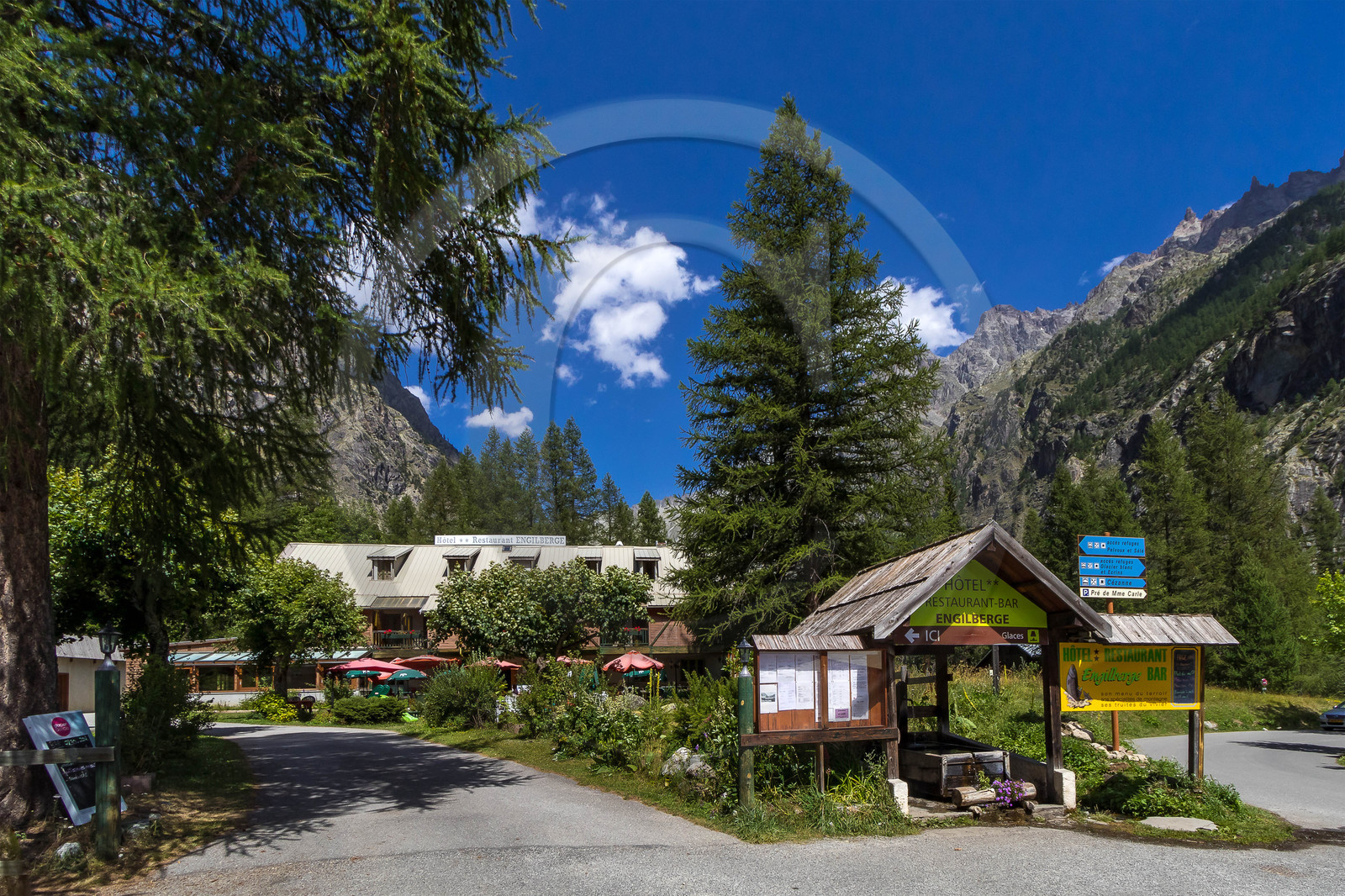 | Description | Hautes-Alpes (05), Pays des Ecrins, Parc national des Ecrins, Pelvoux-Vallouise, Ailefroide, Hôtel Restaurant Engilberge |