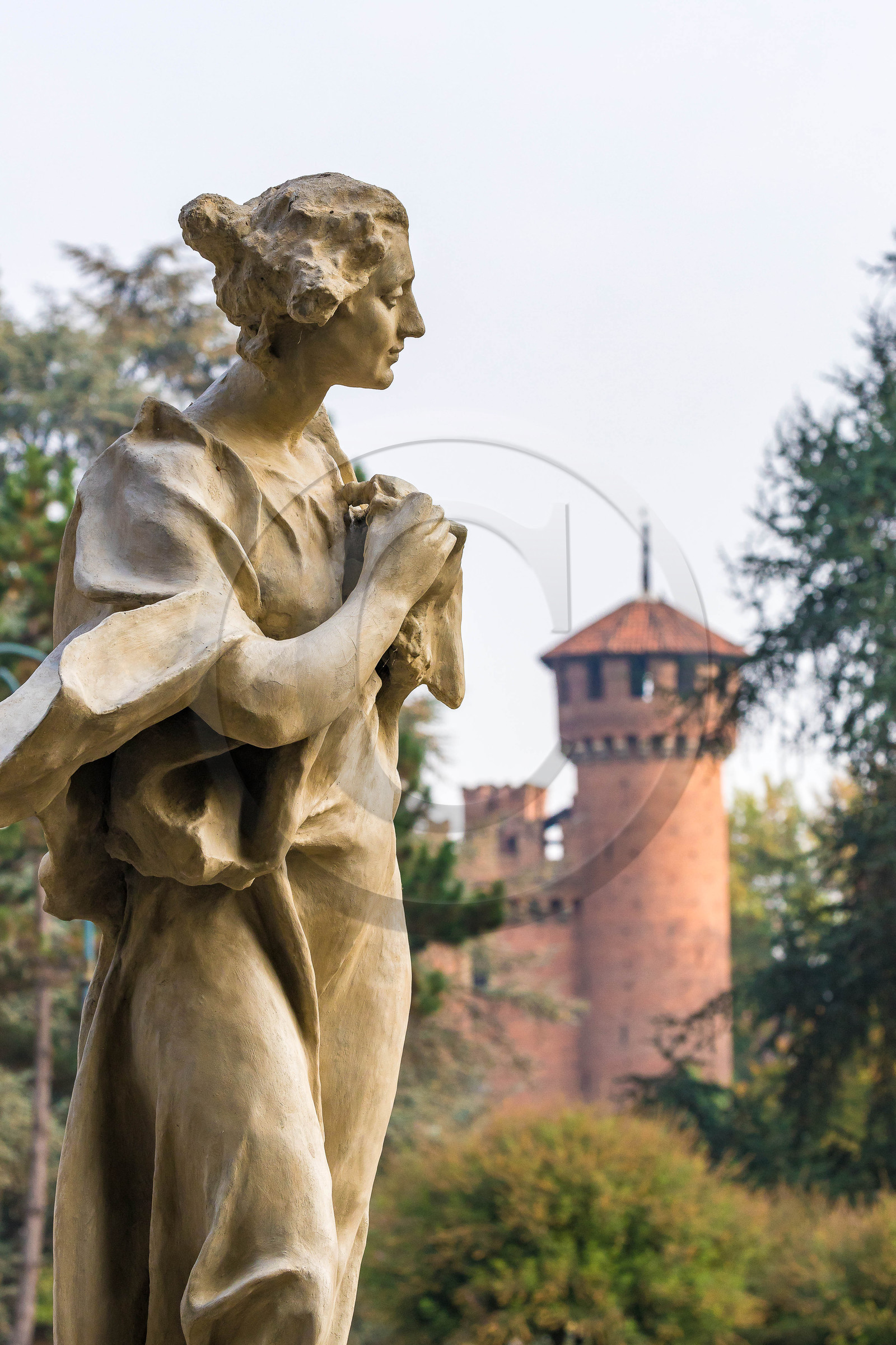| Description | Italie, Piémont, Turin, fontaine du mois ou des saisons et forteresse médiévale |