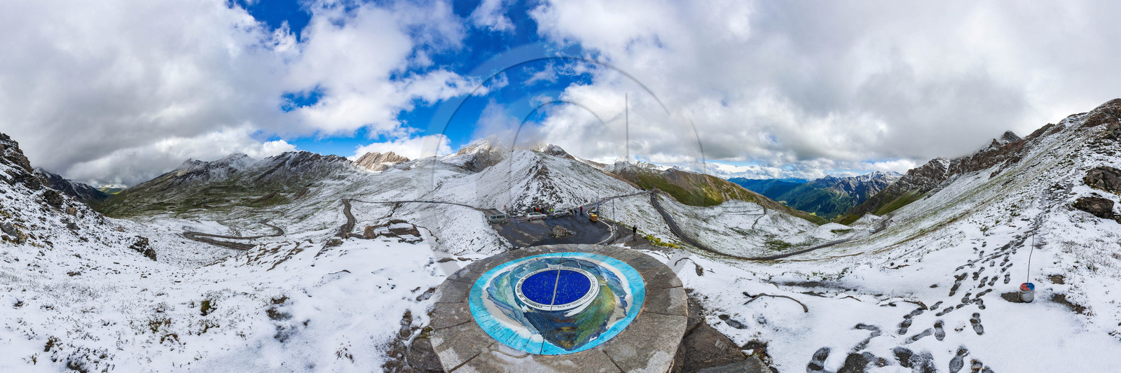 | Description | Hautes-Alpes (05), Parc naturel régional du Queyras, Col Agnel, 2 744 mètres d'altitude, col frontière entre l'Italie et la France, col emprunté par le Tour de France cycliste, table d'orientation |