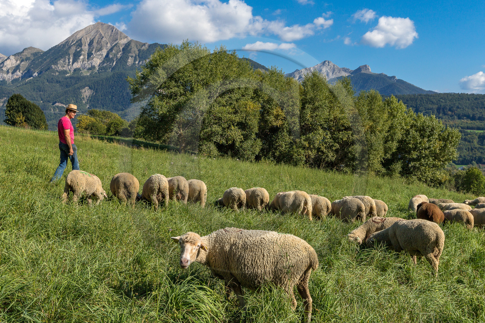 | Description | Hautes-Alpes (05), Parc national des Ecrins, Vallée du Champsaur, Chabottes, Gaec des Ouverts, Alain Dusserre, élevage, production ovine, Marque Esprit Parc national |