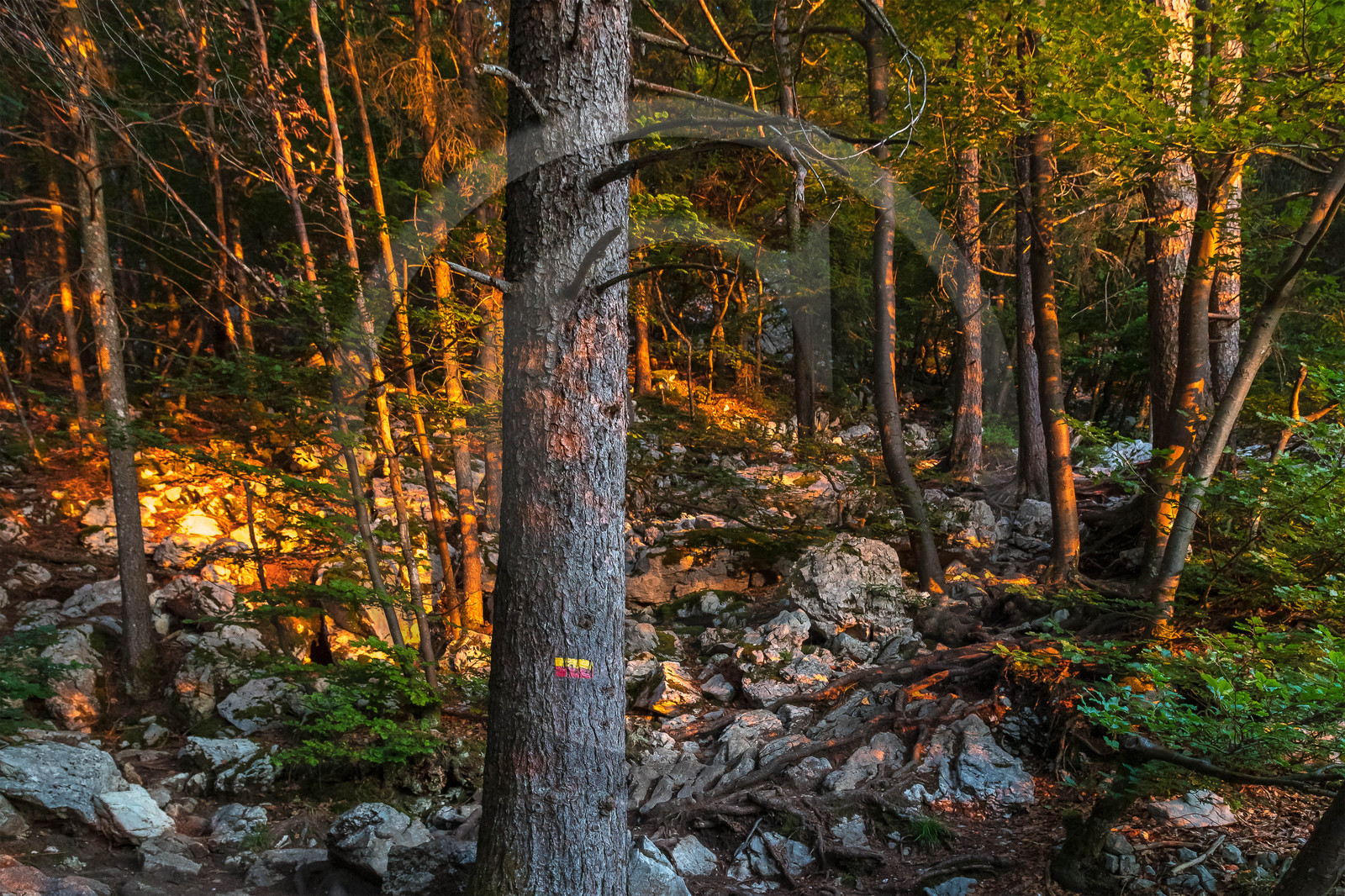 | Description | Haute-Savoie (74), Lac d'Annecy, Annecy, sur le sentier du Mont Veyrier, sentier forestier du col des Sauts |