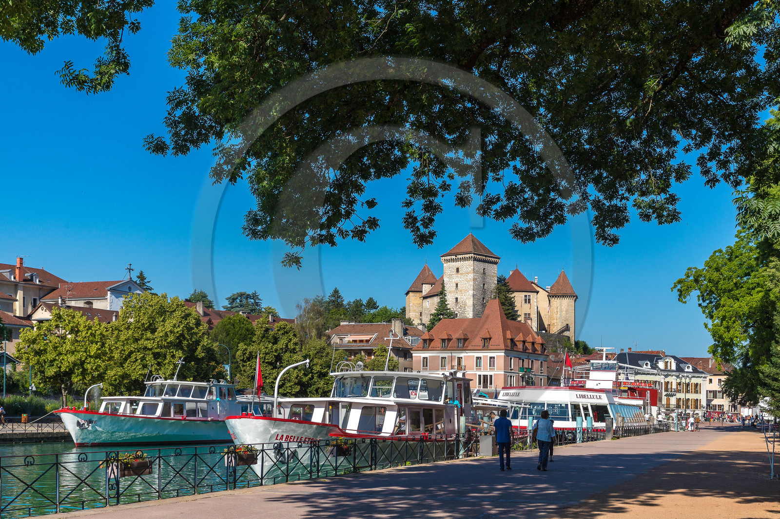 | Description | Haute-Savoie (74), Annecy, le quai Nopoléon III et le Chateau d’Annecy, les bateaux de promenade du lac d'Annecy |