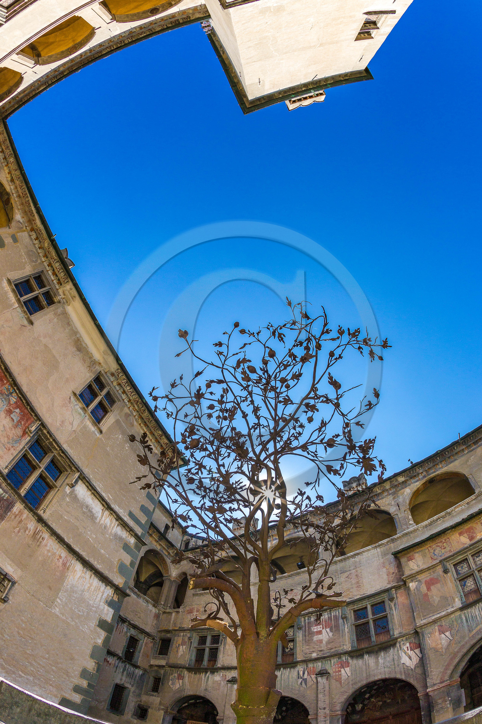 | Description | Italie, vallée d'Aoste, Issogne, Château d'Issogne, fontaine en fer forgé du grenadier |