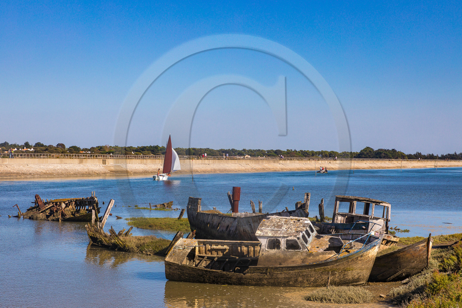 | Description | Vendée (85), Île de Noirmoutier, Noirmoutier-en-l’île et le cimetière de bateaux |