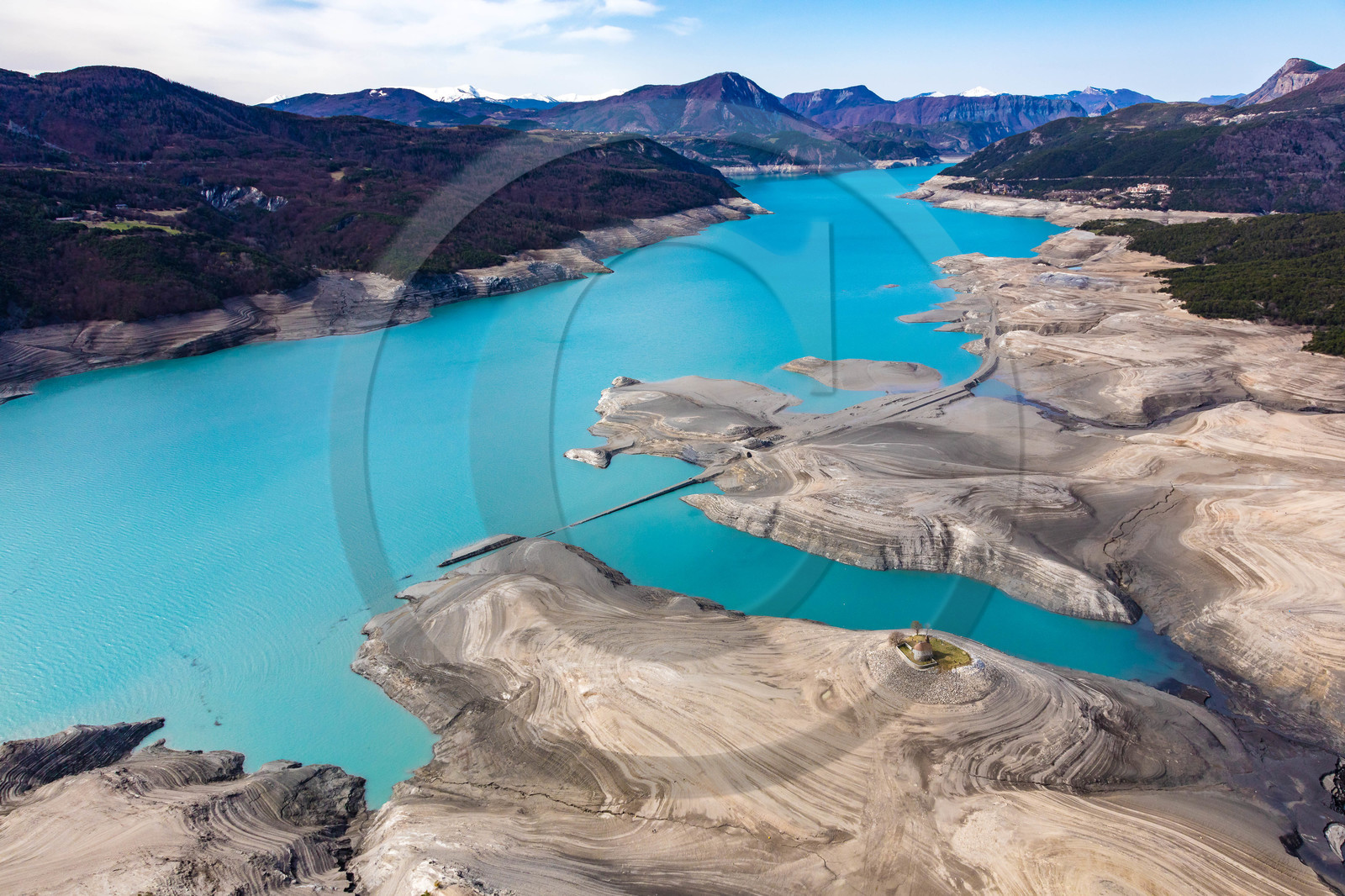 | Description | Hautes-Alpes (05), Pays de Serre-Ponçon, Barrage EDF, Lac de Serre-Ponçon, le niveau du lac est donné en mètres NGF 732 le 15 avril 2018 |