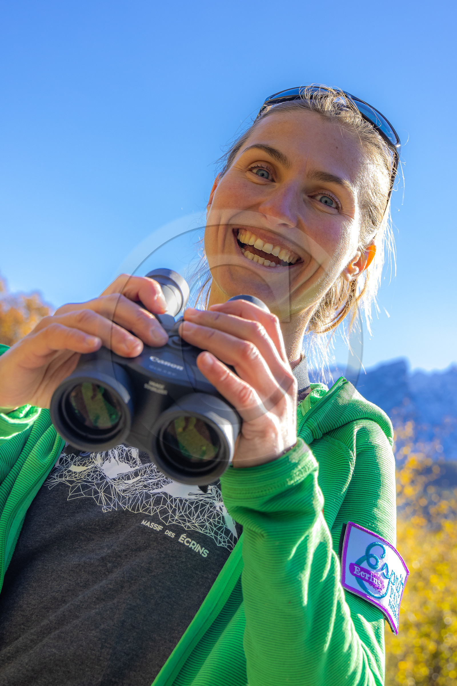 | Description | Hautes-Alpes (05), Parc national des Ecrins, Vallée de la Guisanne, Serre-Chevalier, Bureau Montagne Visa Trekking, randonnée pédestre avec Marjolaine Flammier, accompagnatrice en moyenne montagne, sortie découverte bouquetin Esprit Parc national |