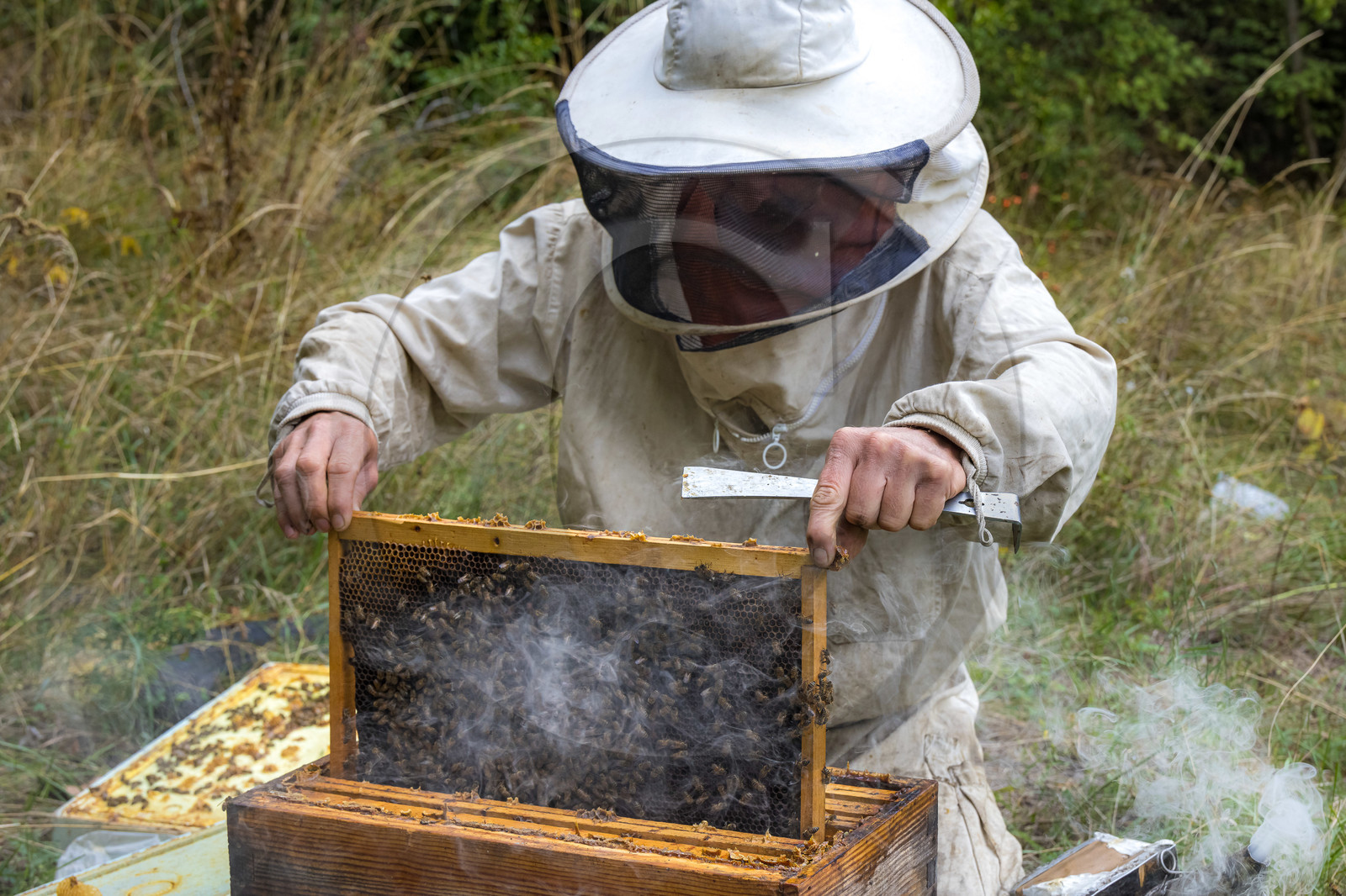 | Description | Hautes-Alpes (05), L'Argentière-la-Bessée, Parc national des Ecrins, Esprit parc national, Rucher du Chardon Bleu, Franck Violin, apiculteur, miel de montagne |