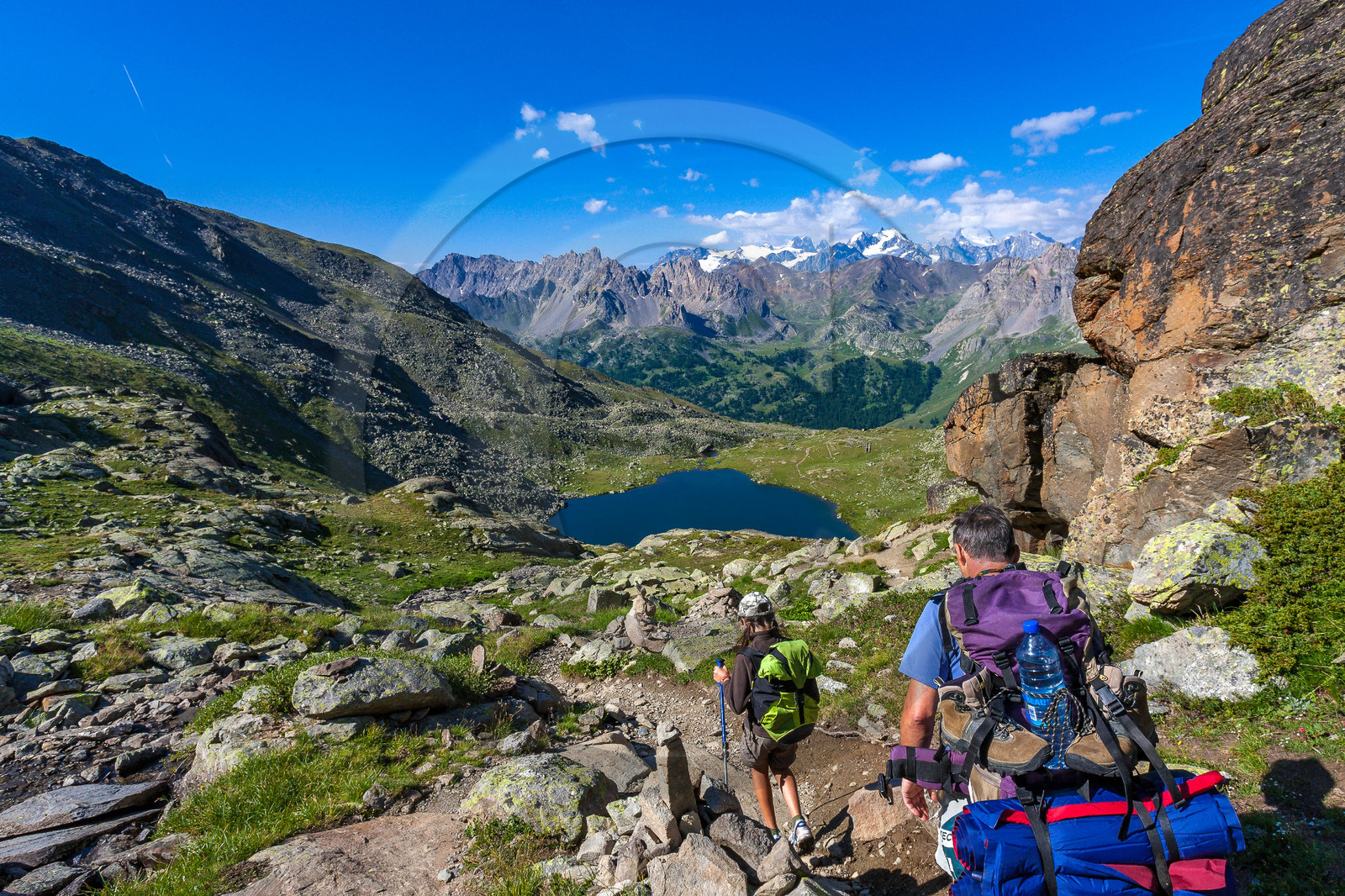 Description | Hautes-Alpes (05), Briançonnais, Vallée de la Clarée, site naturel classé, Névache, randonnée pédestre au Lac du Serpent |