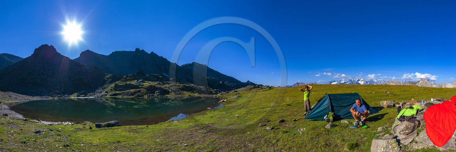 Description | Hautes-Alpes (05), Briançonnais, Vallée de la Clarée, site naturel classé, Névache, Bivouac aux Lacs des Gardioles |