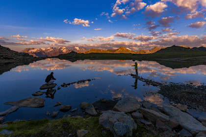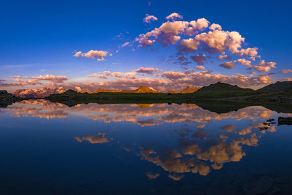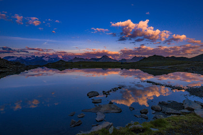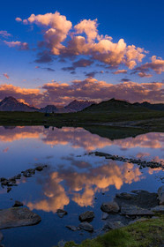Hautes-Alpes (05), Briançonnais, Vallée de la Clarée, site naturel classé, Névache, crépuscule aux Lacs des Gardioles
