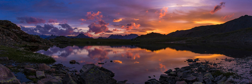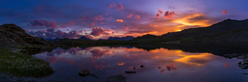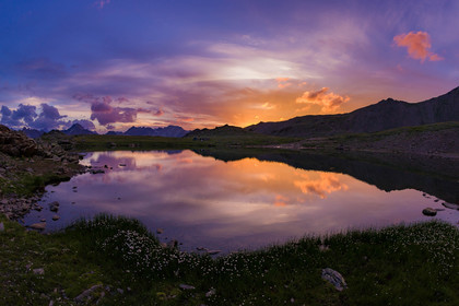 Hautes-Alpes (05), Briançonnais, Vallée de la Clarée, site naturel classé, Névache, lever de soleil aux Lacs des Gardioles
