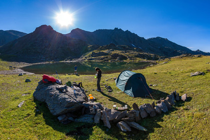 Hautes-Alpes (05), Briançonnais, Vallée de la Clarée, site naturel classé, Névache, Bivouac aux Lacs des Gardioles