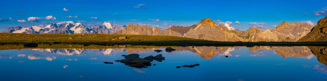 Hautes-Alpes (05), Briançonnais, Vallée de la Clarée, site naturel classé, Névache, Lacs des Gardioles, le massif des Ecrins, la Barre des Ecrins et La Meije