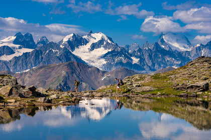 Hautes-Alpes (05), Briançonnais, Vallée de la Clarée, site naturel classé, Névache, randonnée pédestre aux Lacs des Gardioles, le massif des Ecrins, la Barre des Ecrins et la Meije