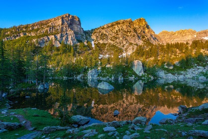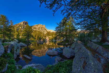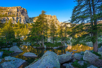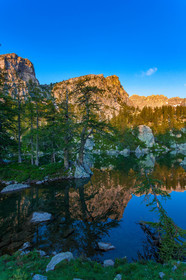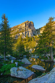 Alpes Marintimes (06), Parc national du Mercantour, Vallée de la Valmasque, lac du Basto et les rochers de Sainte-Marie
