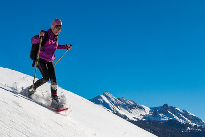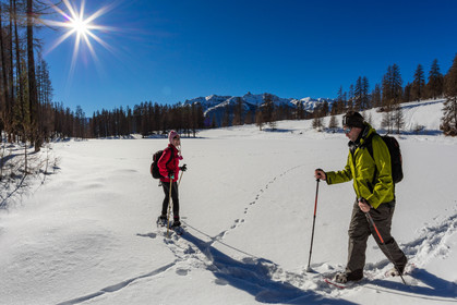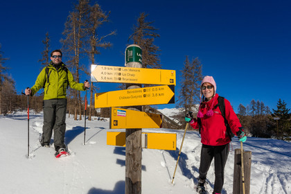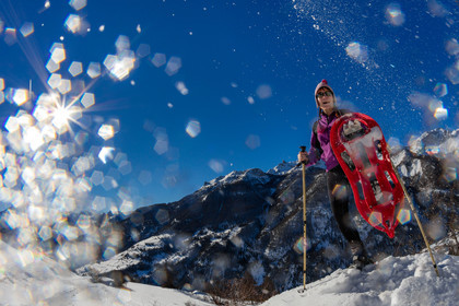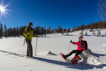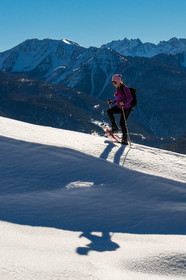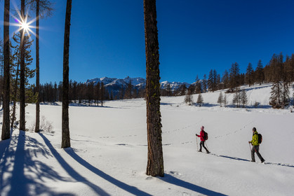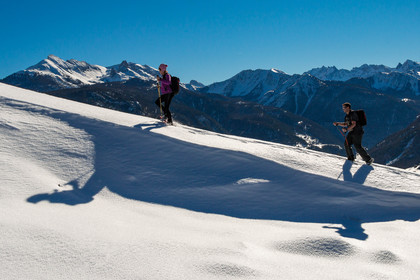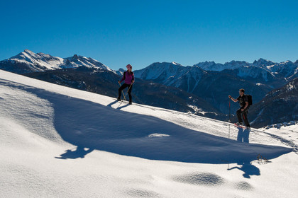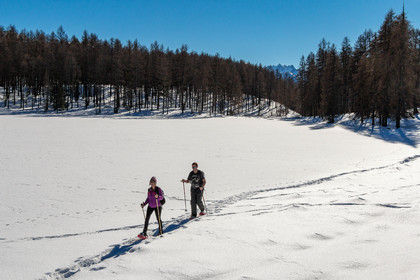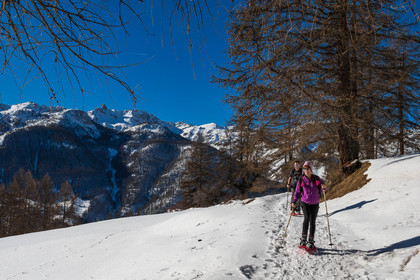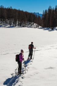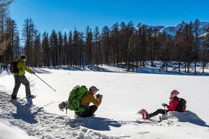 Hautes-Alpes (05), Parc naturel régional du Queyras, Arvieux, lac de Roue, Randonnée en raquettes à neige // Hautes-Alpes (05), Regional Natural Park of Queyras, Arvieux, lake Roue, snowshoes