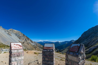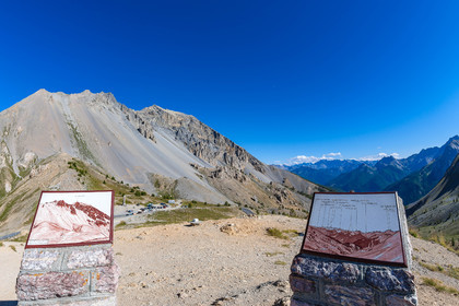 Hautes-Alpes (05), Parc naturel régional du Queyras, Col Agnel, 2 744 mètres d'altitude, col frontière entre l'Italie et la France, col emprunté par le Tour de France cycliste, table d'orientation // Hautes-Alpes (05), Regional Natural Park of Queyras, pass Agnel beetwin Italia and France
