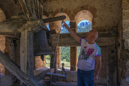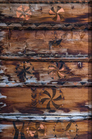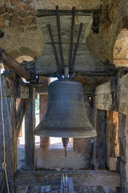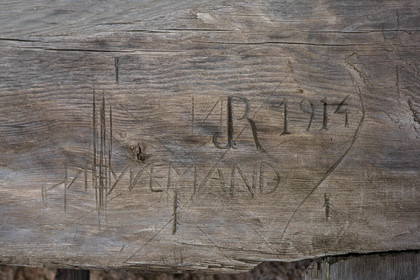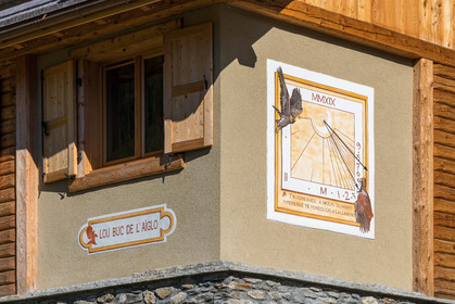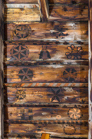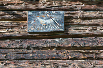 Hautes-Alpes (05), Parc naturel régional du Queyras, Ceillac, Eglise Sainte Cécile, gravure dans le clocher // Hautes-Alpes (05), Queyras Regional Park, Ceillac, Eglise Sainte Cécile church