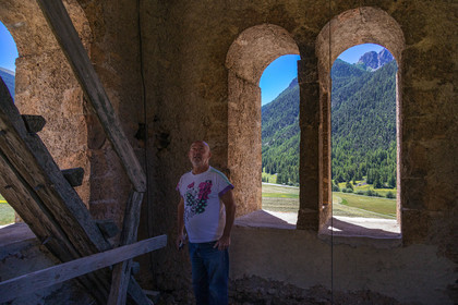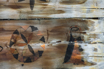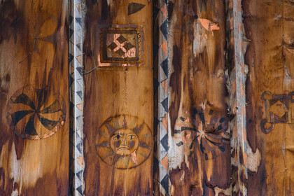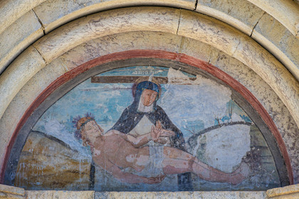 Hautes-Alpes (05), Parc naturel régional du Queyras, Ceillac, Eglise Sainte Cécile, tympan avec peinture Piéta // Hautes-Alpes (05), Queyras Regional Park, Ceillac, Eglise Sainte Cécile church