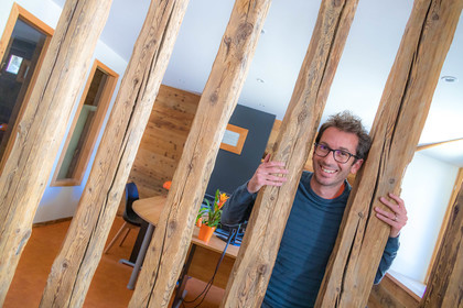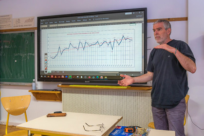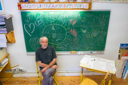 Hautes-Alpes (05), Parc naturel régional du Queyras, Ceillac, Michel Chavrot , ancien directeur de l'Ecole primaire de Ceillac, La Ruche du Cristillan // Hautes-Alpes (05), Queyras Regional Natural Park, Ceillac, Michel Chavrot, former director of the Ceillac school