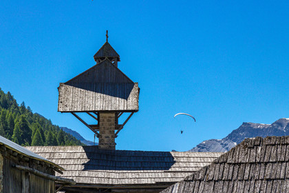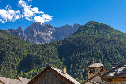 Hautes-Alpes (05), Parc naturel régional du Queyras, Ceillac, Eglise Sainte Cécile, clocher // Hautes-Alpes (05), Queyras Regional Park, Ceillac, Eglise Sainte Cécile church