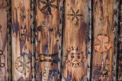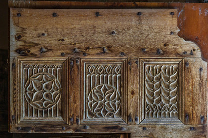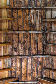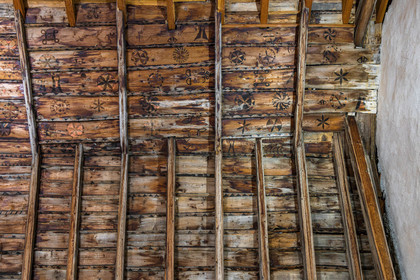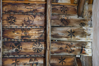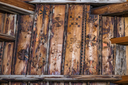 Hautes-Alpes (05), Parc naturel régional du Queyras, Ceillac, Eglise Sainte Cécile, charpente en bois avec sculptures queyrassines // Hautes-Alpes (05), Queyras Regional Park, Ceillac, Eglise Sainte Cécile church, wooden frame with Queyrassine sculptures