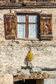Hautes-Alpes (05), Parc naturel régional du Queyras, Ceillac, facade et fenêtre de maison // Hautes-Alpes (05), Queyras Regional Park, Ceillac