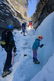 Hautes-Alpes, 05, Parc naturel régional du Queyras, Aiguille, Ruisseling avec Pascal Giraud guide de haute-montagne // Hautes-Alpes, 05, regional natural Park of Queyras, Aiguille, Ruisseling with Pascal Giraud mountain guide