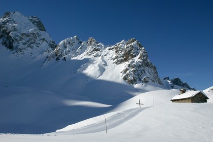 Hautes-Alpes, 05, Parc naturel régional du Queyras, Ceillac, Lac Saint-Anne, les montagnes de Font-Sancte, Pic des Heuvières // Hautes-Alpes, 05, Queyras Regional Park, Ceillac