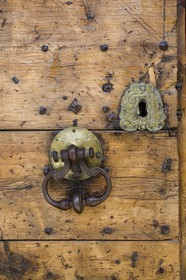 Hautes-Alpes, 05, Parc naturel régional du Queyras, village de Saint-Véran, 2 042 m d'altitude, plus haute commune d'Europe, un des plus beaux villages de France, station village d'été et d'hiver, porte ancienne, serrure, heurtoir // Hautes-Alpes, 05, Queyras Regional Park, the village of Saint-Veran, 2042 m, highest village in Europe, one of the most beautiful villages in France, resort village of summer and winter, old door, lock, knocker