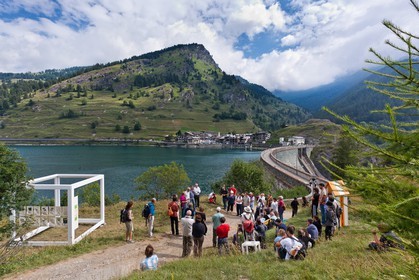 Italie, Le Sentier Art & Nature propose en pleine nature, un parcours d’art contemporain dans le Val Varaita en Italie et le Queyras en France, Lac et barrage de Pontechianale, Castello // Italia, the trail Art & Nature offers in full nature, a journey of contemporary art in the Val Varaita in Italy and the Queyras in France, Pontechianale, Castello