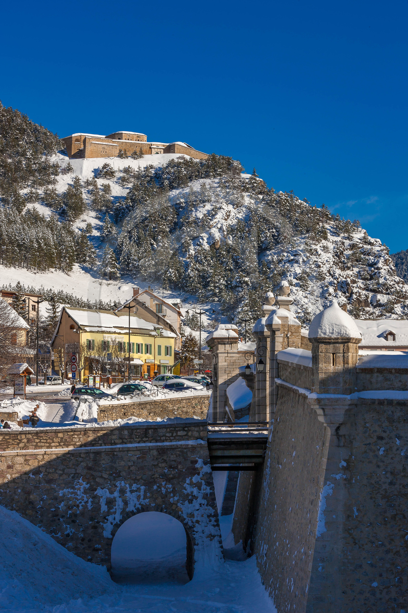 Description | Hautes-Alpes (05), Serre Chevalier Vallée Briançon, 1350m d'altitude, ville d'Art et d'Histoire fortifiée par Vauban, les fortifications de Vauban sont inscrites sur la liste du patrimoine mondial de l'UNESCO, le Fort des Salettes, la Porte de Pignerol et une échauguette |